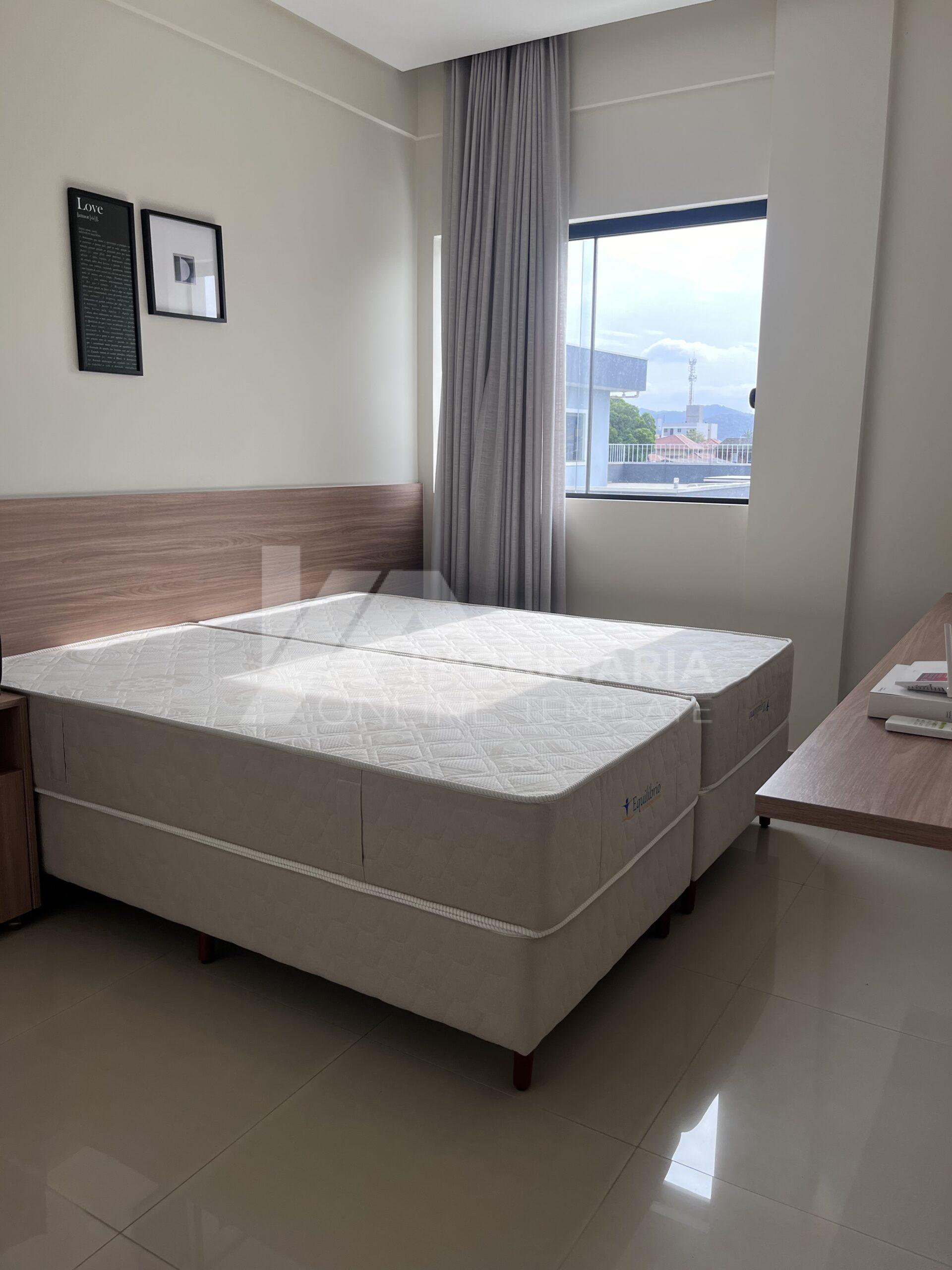 O imóvel conta com 1 suíte completa + 1 dormitório, ambos equipados com armários planejados, ar-condicionado, cortinas e ponto para TV, oferecendo funcionalidade e conforto no dia a dia.
